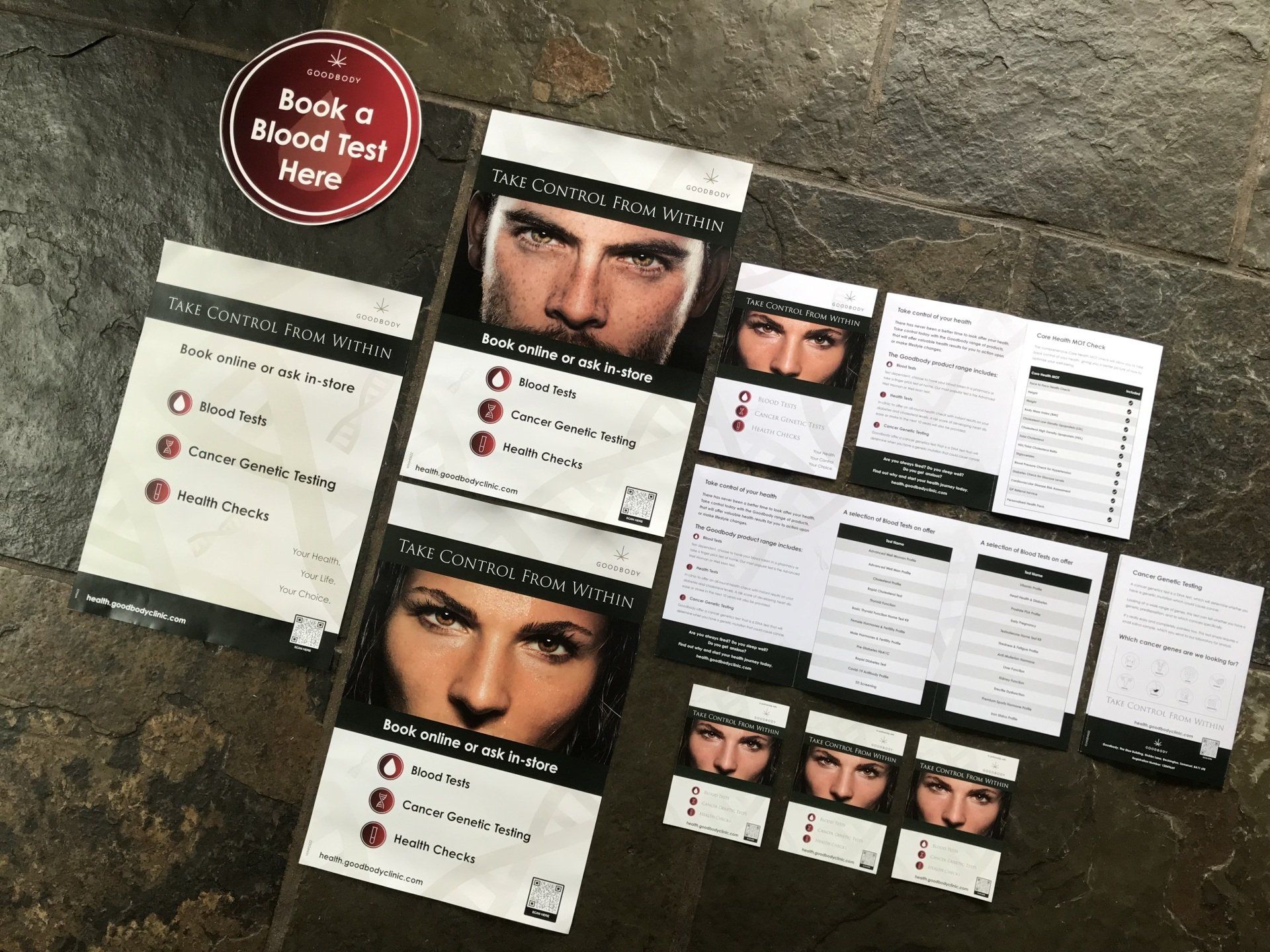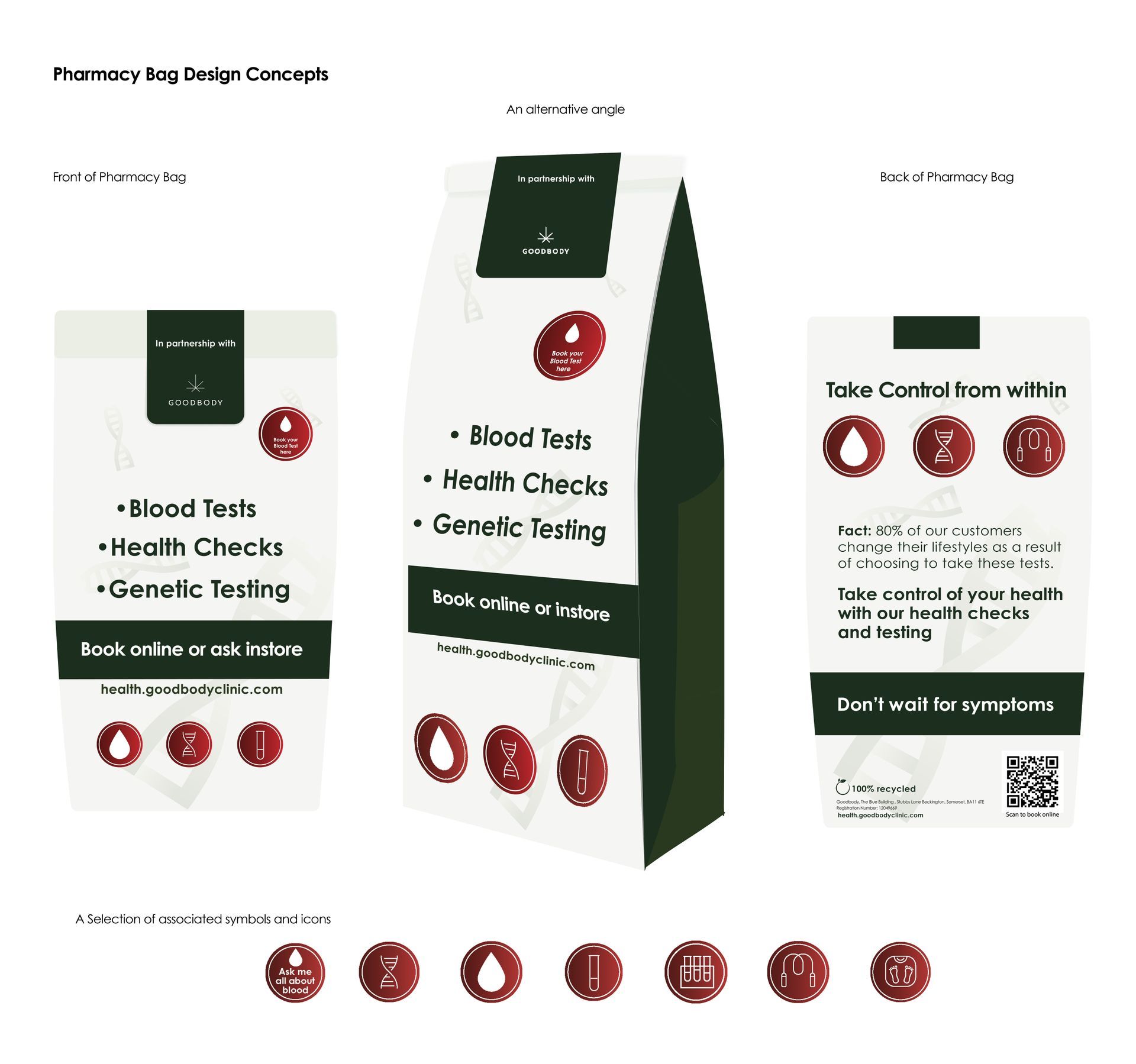 A Distinctive Brand was created to embody the simplicity and professionalism of Goodbody Blood Testing services. The collateral below is part of the Goodbody Blood Testing Range range, which includes advertorials, corporate and sales brochures, posters, stickers and wellness packs of all sizes and variation, required to promote the various targeted blood tests and other available diagnostic services. The collateral works as in-house pharmacy point of sale, leave behinds and loose dispensing items. The various pieces of collateral were meant to stand out in a very crowded and sometimes hectic environment but were designed to be reflective of the professional, calm and simple solutions on offer for any minor medical concern.