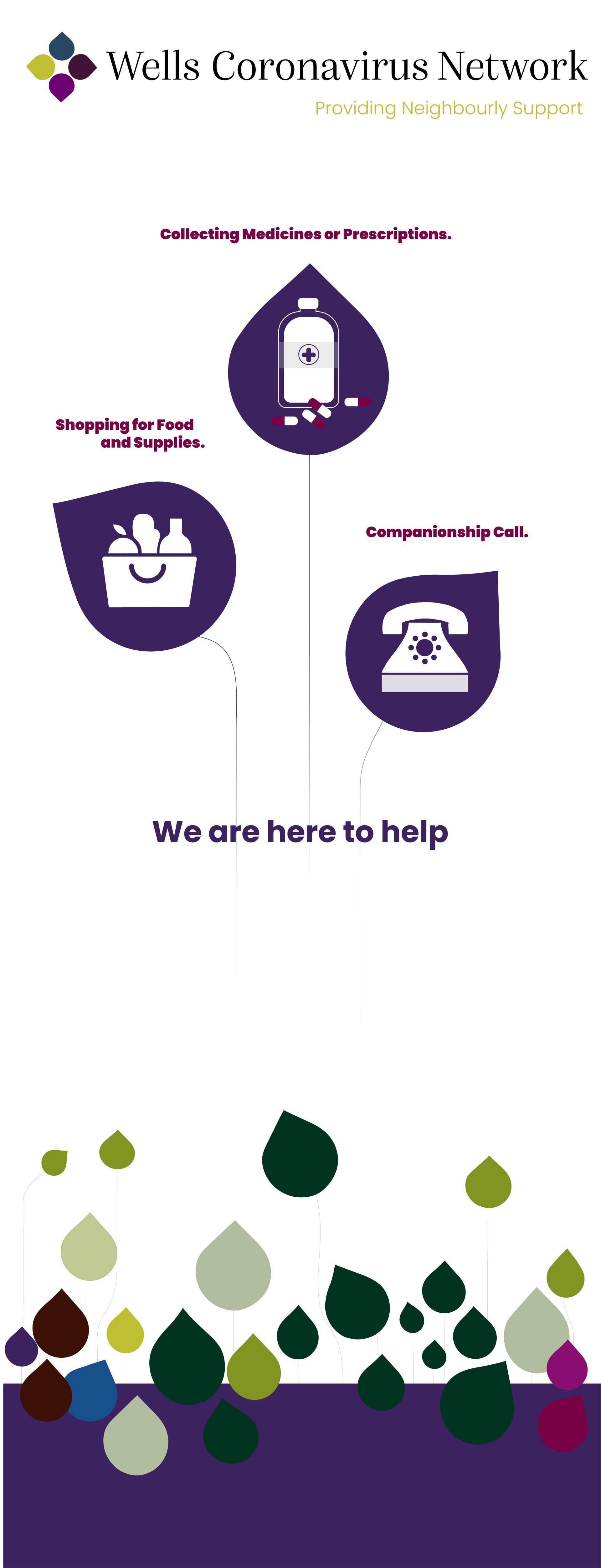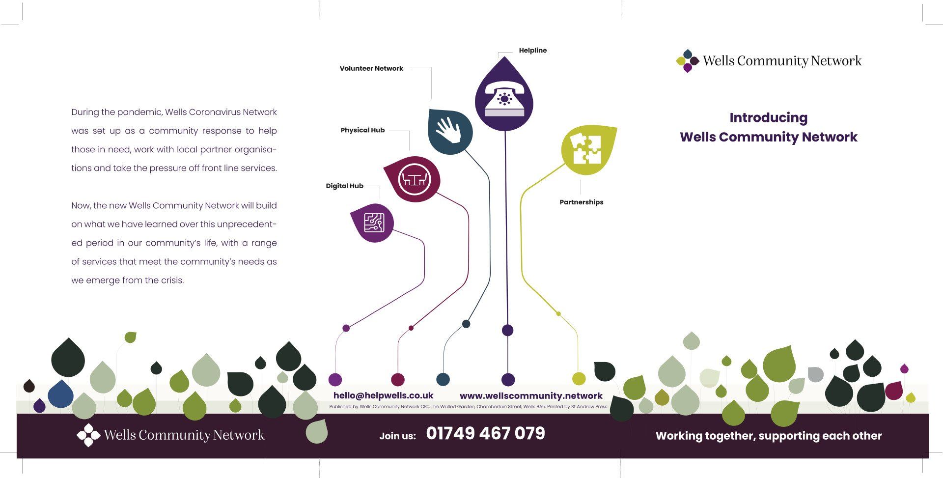 The imagery used in the new branding of the Wells Community Network has been created as a metaphor for the local community itself, that is; a range of individual plants all interdependent yet growing together in an organic way; a mix of colour, energy and variety which is constantly interacting, evolving and adapting to fit its particular habitat.